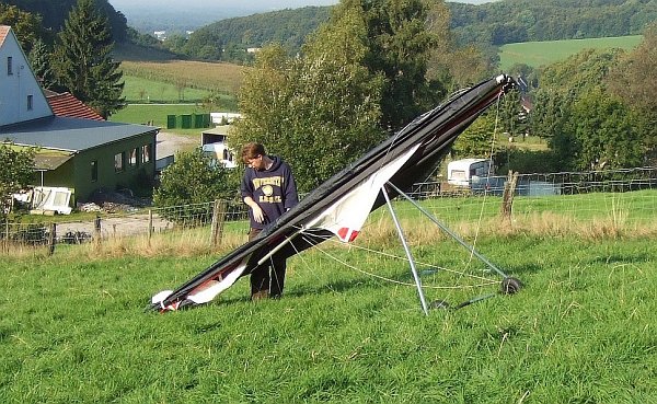 Ich fing meine Ausbildung zum Hängegleiterpiloten im Sommer 2005 an. Der Übungshang der Flugschule Bielefeld befindet sich in Ascheloh bei Werther (Besichtigung mit Google Earth: 52° 2'54.31"N, 8°24'21.16"E), am Südhang des Teutoburger Waldes zwischen Bielefeld und Osnabrück.